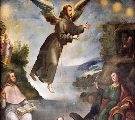Die Darstellung des beflügelten Franziskus will auf die Ursprünge und Absichten des missionarischen Konzeptes verweisen, mit dem die Franziskaner, im wahrsten Sinne des Wortes beflügelt in die Neue Welt kamen. Mit diesem Bild werden die programmatischen Ideale der Urkirche, Paradiesvorstellungen und endzeitlich-millenaristische Erwartungen zusammengefasst und in der Gestalt des beflügelten Franziskus dem Betrachter vor Augen gestellt. Der Bildtypus will nicht an Ideale der Vergangenheit erinnern und ihre eventuelle Wiederbelebung anmahnen, vielmehr wird der Betrachter durch subtile Hinweise auf Zukunftswerte provoziert. Zukunftswerte, welche eben in der Gestalt des beflügelten Franziskus nun auch den Betrachtenden selbst beflügeln sollen jene in den franziskanischen Idealen umrissene Neue Welt anzustreben. Mit dem beflügelten Franziskus stehen wir vor einem Bildtypus, der nicht die Vergangenheit zur Schau stellen will, sondern eben bildhaft auf eine mögliche Zukunft verweist. Damit wird auf eine durchaus traditionelle Interpretation des Heiligen von Assisi zurückgegriffen, die selbst der, mit Sicherheit nicht den millenaristischen Utopien seiner Zeit verfallene, Biograph Celano, im Auftrage des Papstes schreibend, zur Sprache bringt, wenn er vom „Heiligen Gottes, der allen als Mensch des anderen Zeitalters erschien (Homo alterius saeculi)“ (vgl. 1 C 36 und 1 C 82) spricht.
